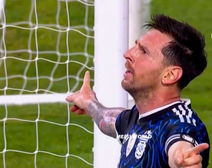上半场最后时刻,梅西先是传给麦卡利斯特,随后接麦卡传球后小角度抽射破门。